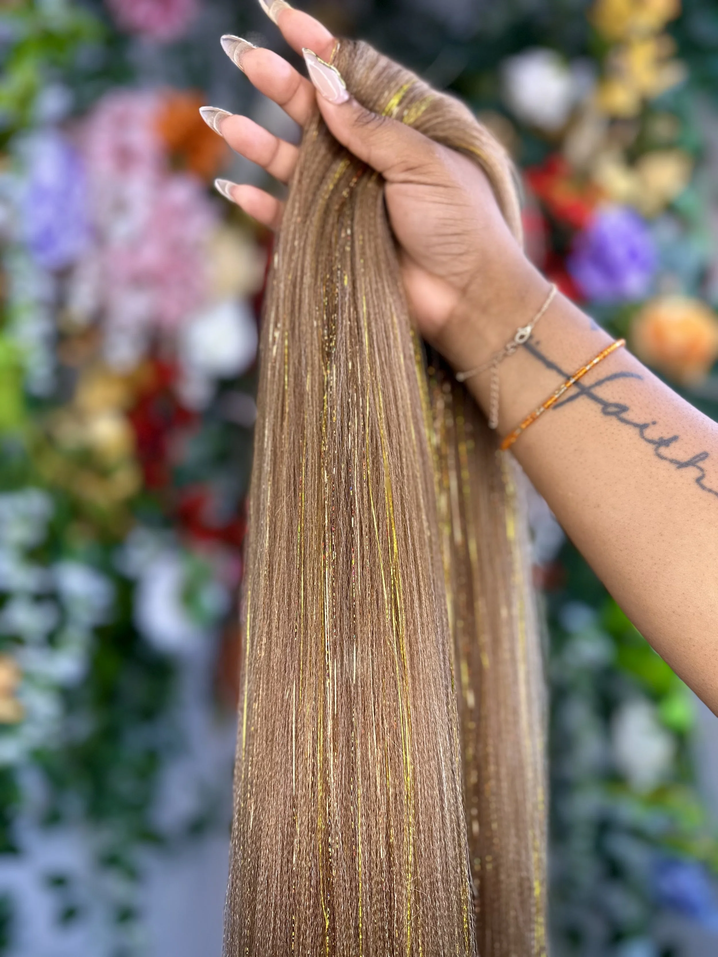 Add a touch of sparkle with your choice of tinsel (+$2) or opt for 'No Tinsel' to keep your blend at the original price of $10. "Cocoa Butter" shown above features both Gold and Brown tinsel.