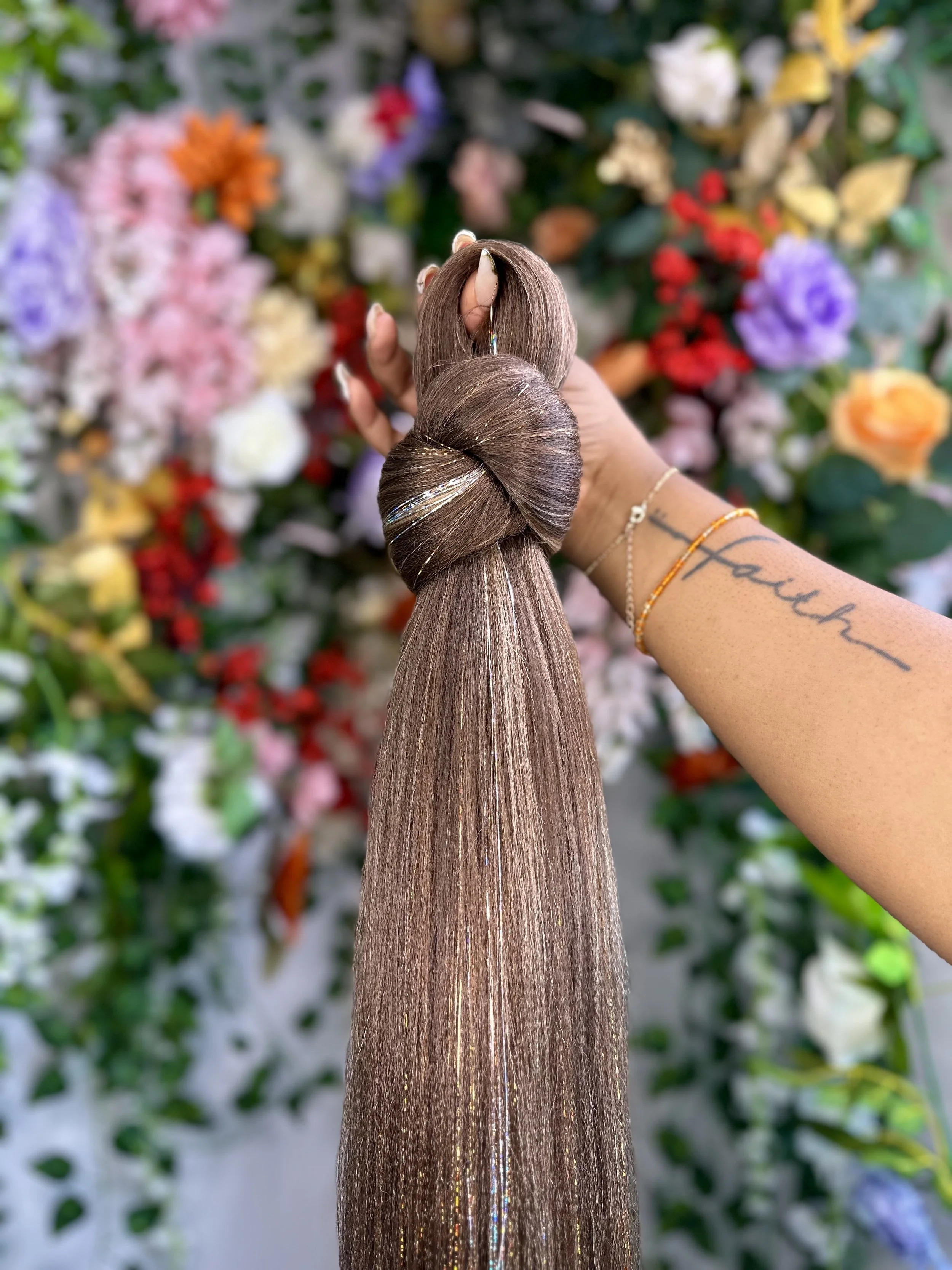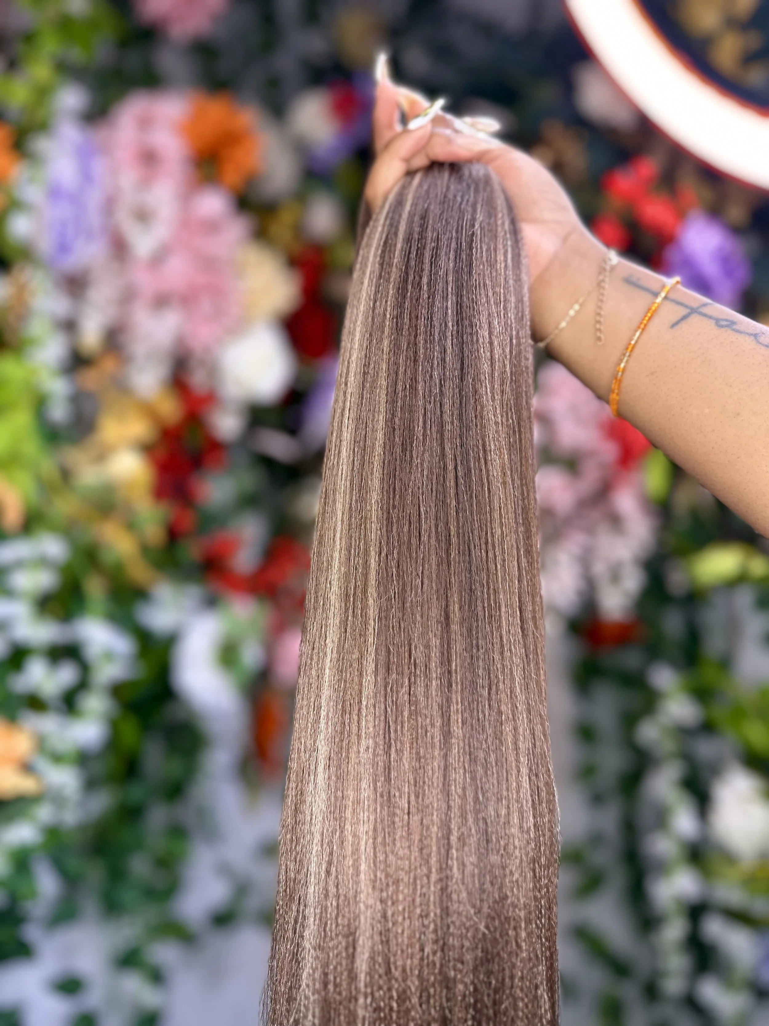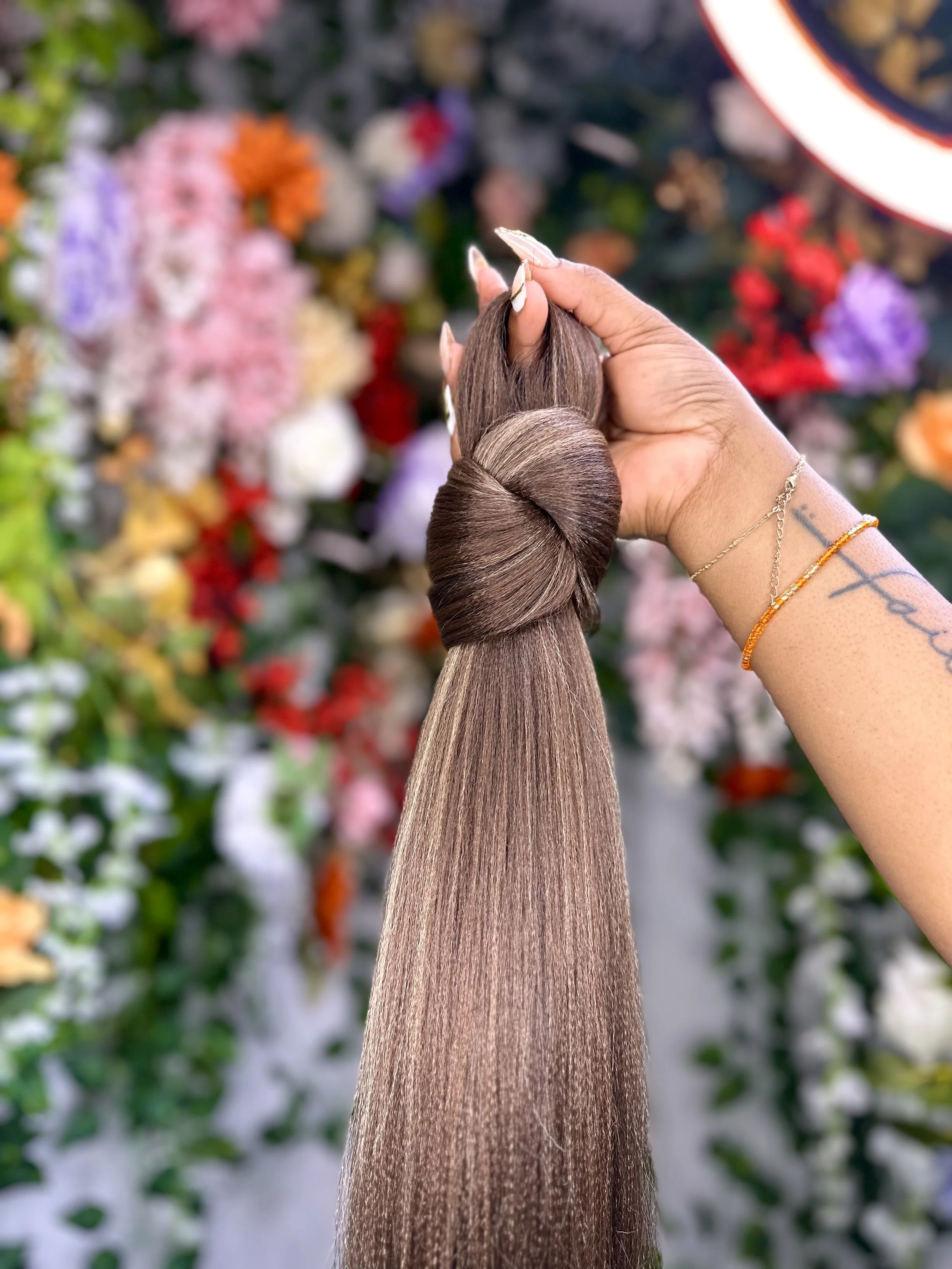 Hot Chocolate is a rich blend of dark chocolate brown, warm mocha, caramel, and soft beige braiding hair—crafted to capture the indulgence of fall. Like your favorite mug on a chilly day, this custom mix brings warmth and dimension to every braid, from knotless to boho styles. This limited edition blend is available only until December 2.